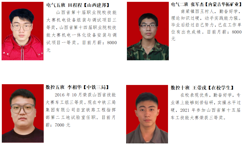 我校自创办以来,在十一年的时间里,凭借科学规范的管理、敬业奉献的教师团队、踏实进取的学风、培养了一大批优秀的毕业生。如今,桐封学子的足迹已经遍布全国各地各行各业。他们在自己的工作岗位上用过硬的专业技术为自己为学校和企业争得荣誉。